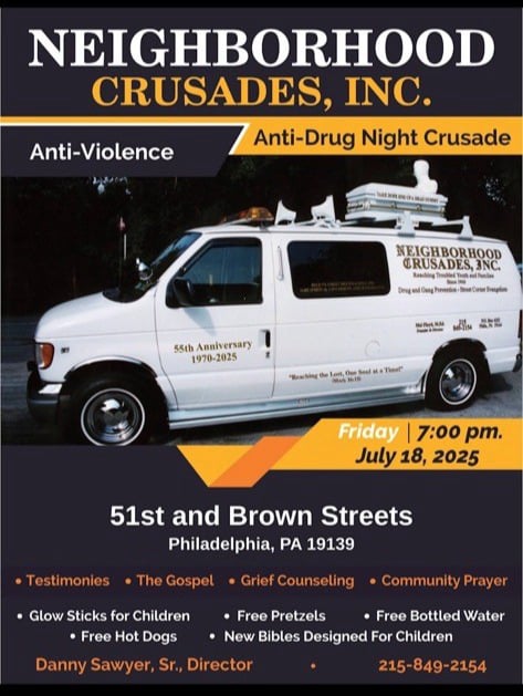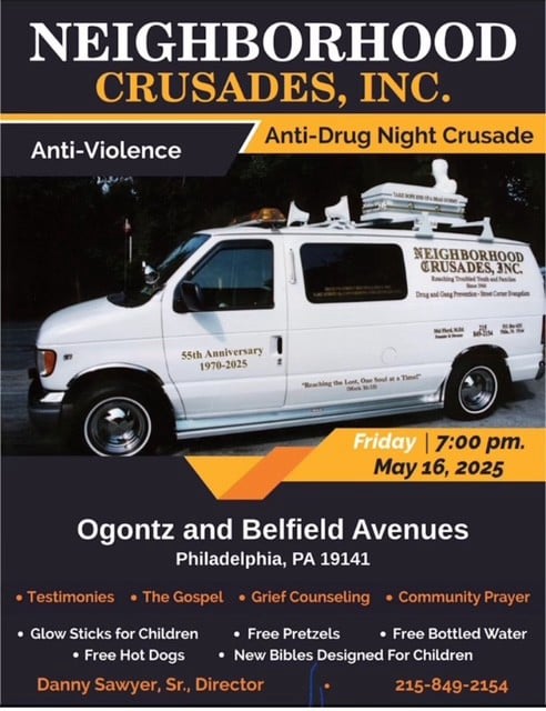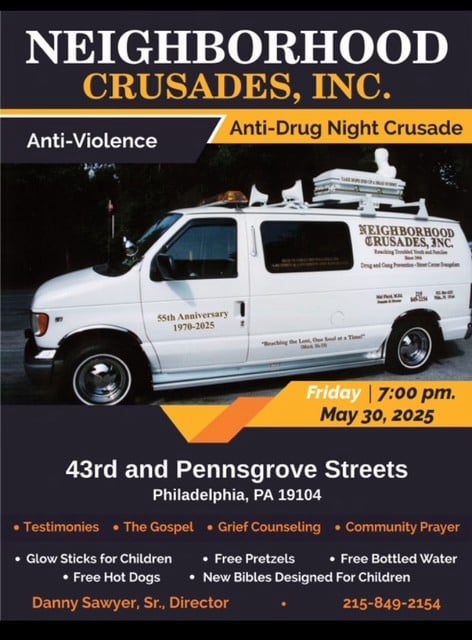 Through our Night time Anti-Violence, Anti-Drug Crusades, School of Evangelism, Homeless Outreaches and Gospel Tract Distributions, we seek to reach the unsaved with the Gospel of Jesus Christ, train Christians to effectively evangelize